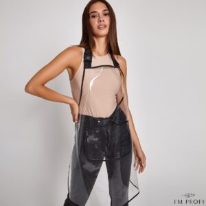Фартух для майстра перманентного макіяжу або перукаря, виконаний з нейлону, що дає простоту у догляді та міцність. Він прозорий, тому легко поєднується з будь-якою уніформою. Спереду доповнен місткою кишенею. Бретелька на шиї регулюється по довжині.