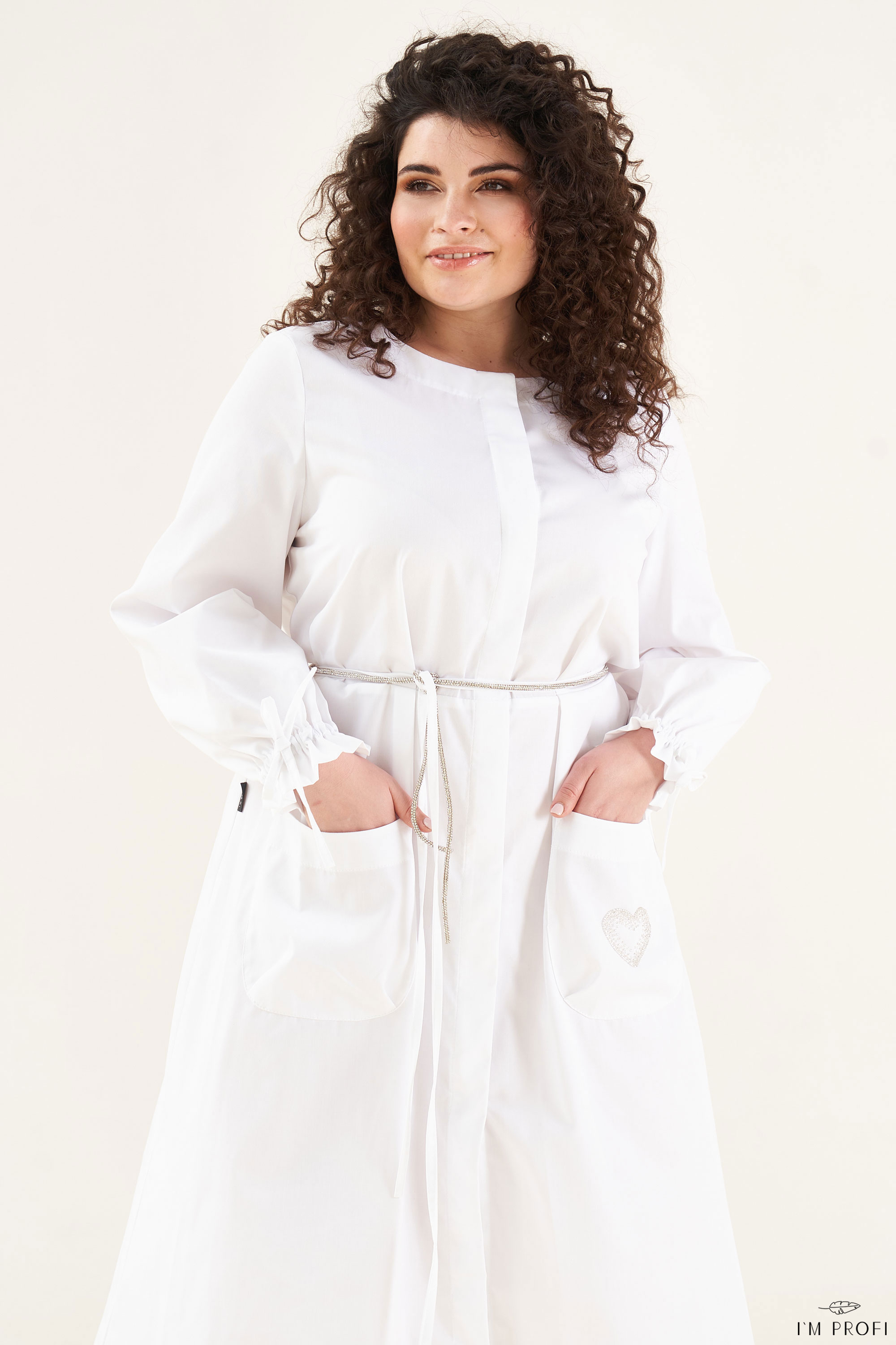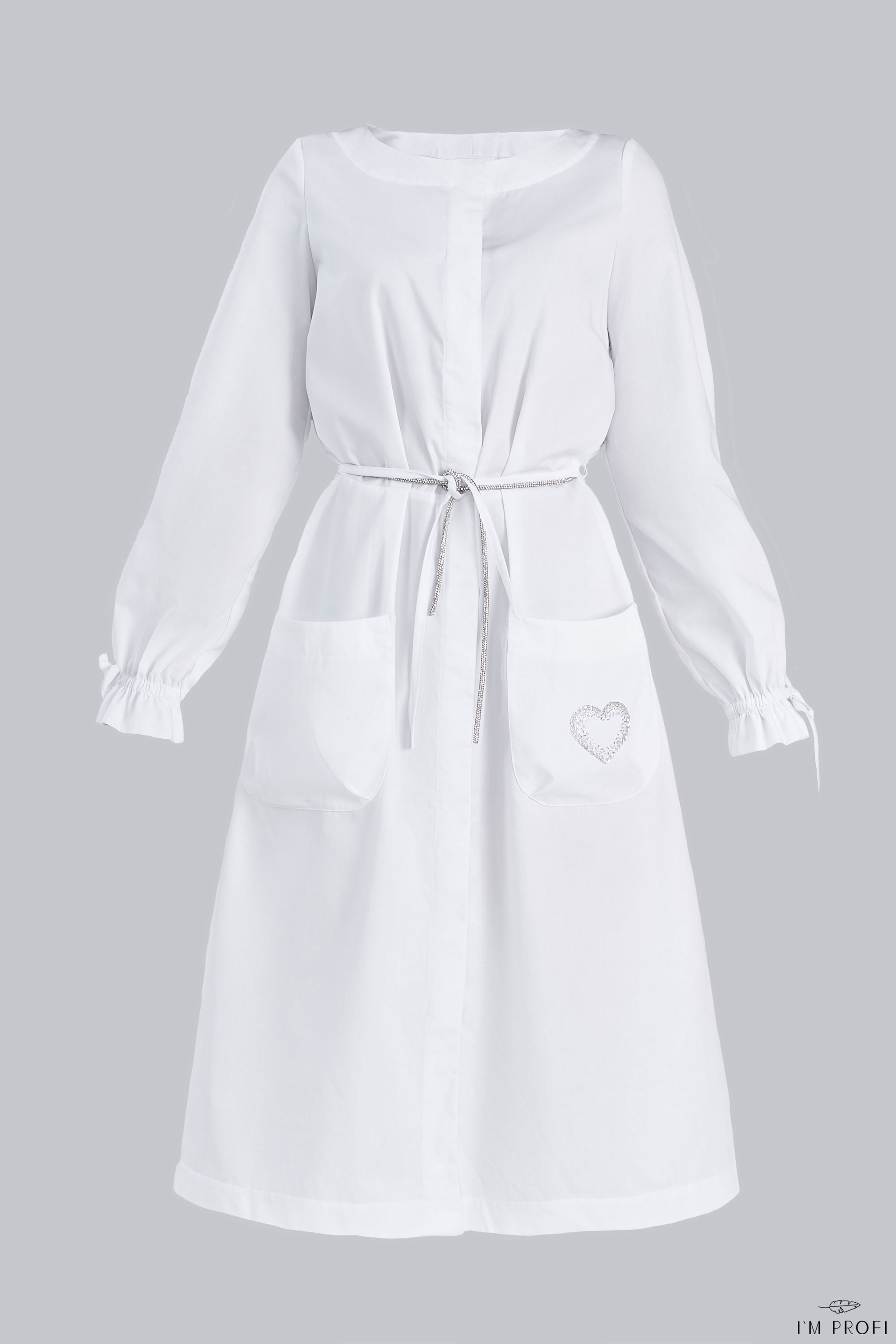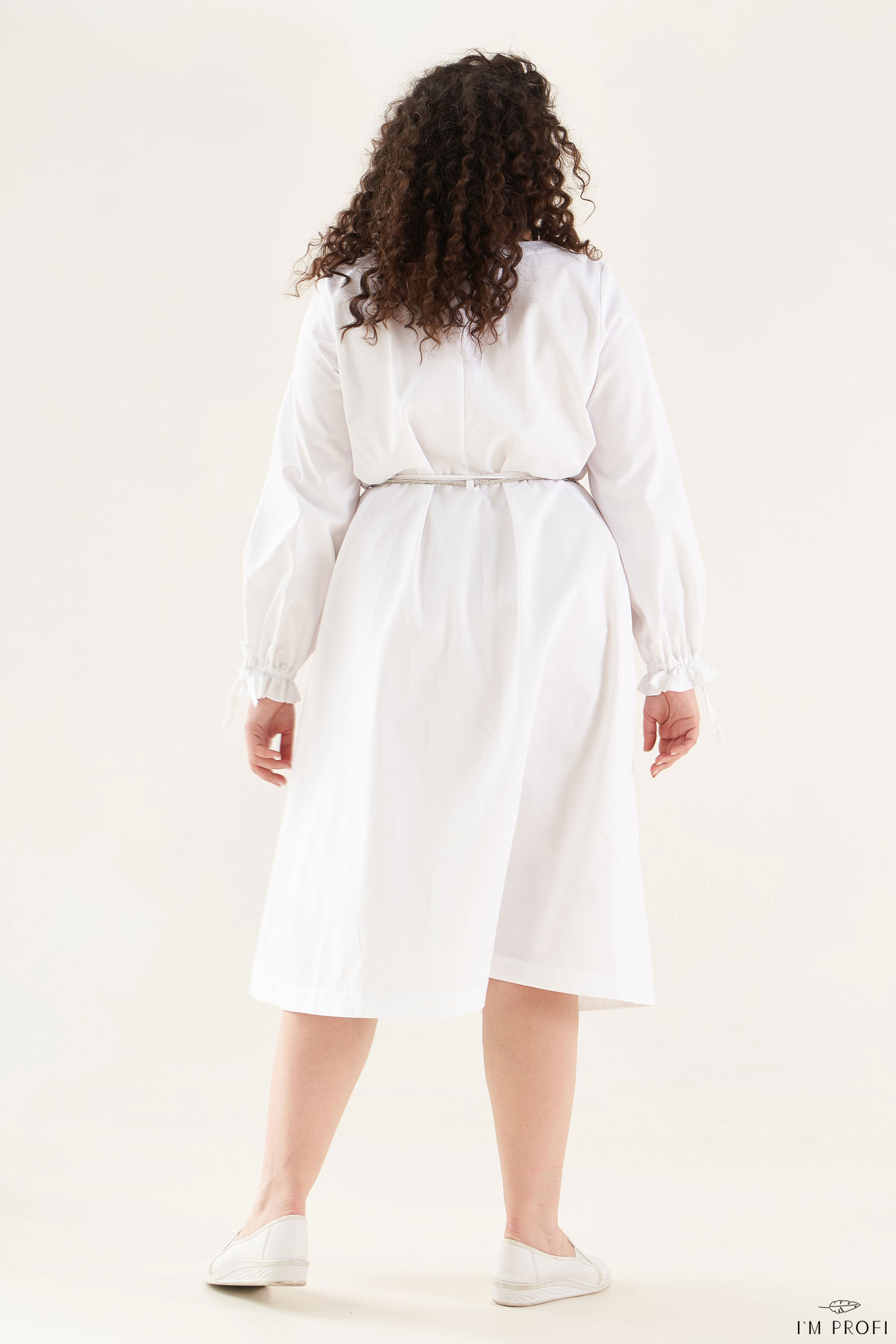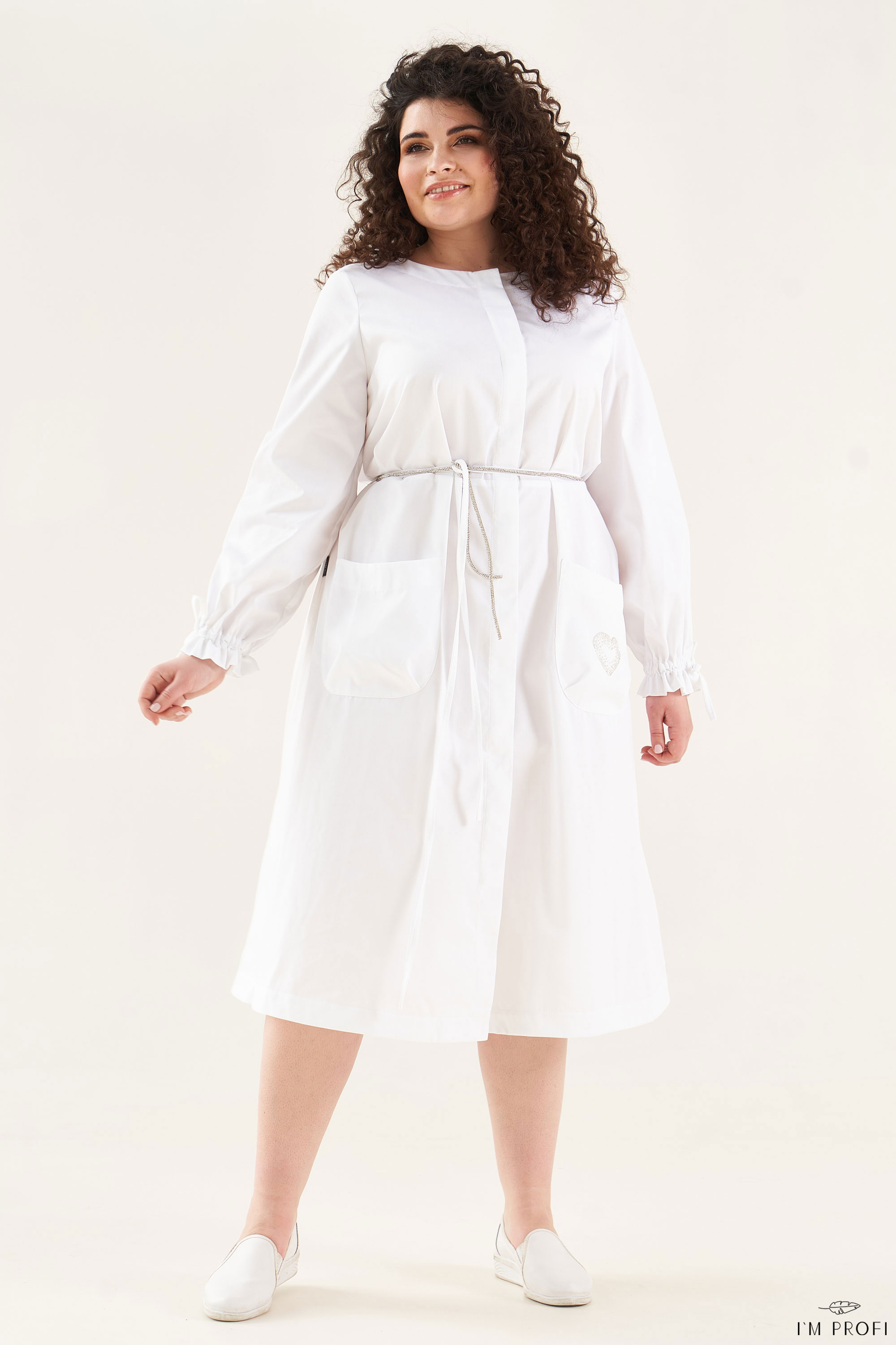 Жіночий медичний халат з лімітованої колекції – відмінне рішення для профільних фахівців медицини та косметологів. Халат зручної довжини, напівприлеглого крою відмінно сідає на будь-яку фігуру. Два тоненьких пояси чудово підкреслюють талію. Халат доповнений місткими кишенями один з яких декоровано ручною вишивкою.