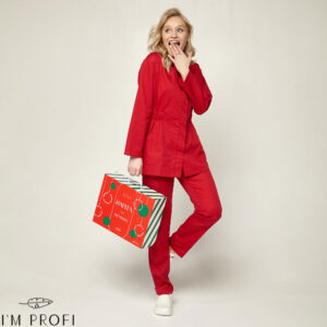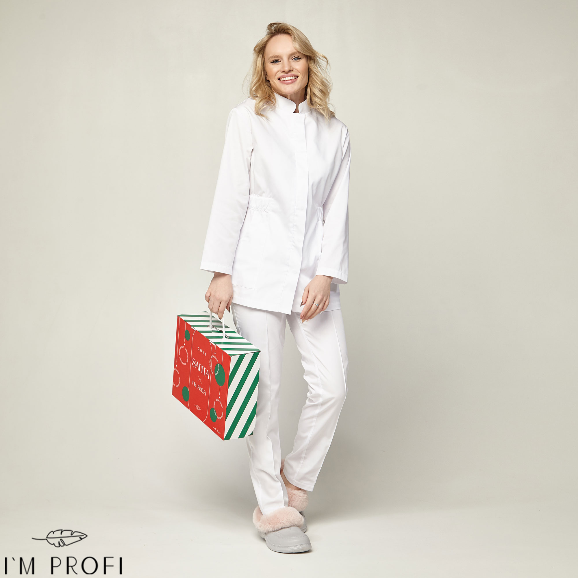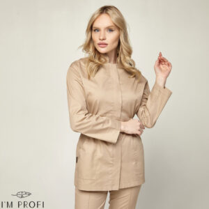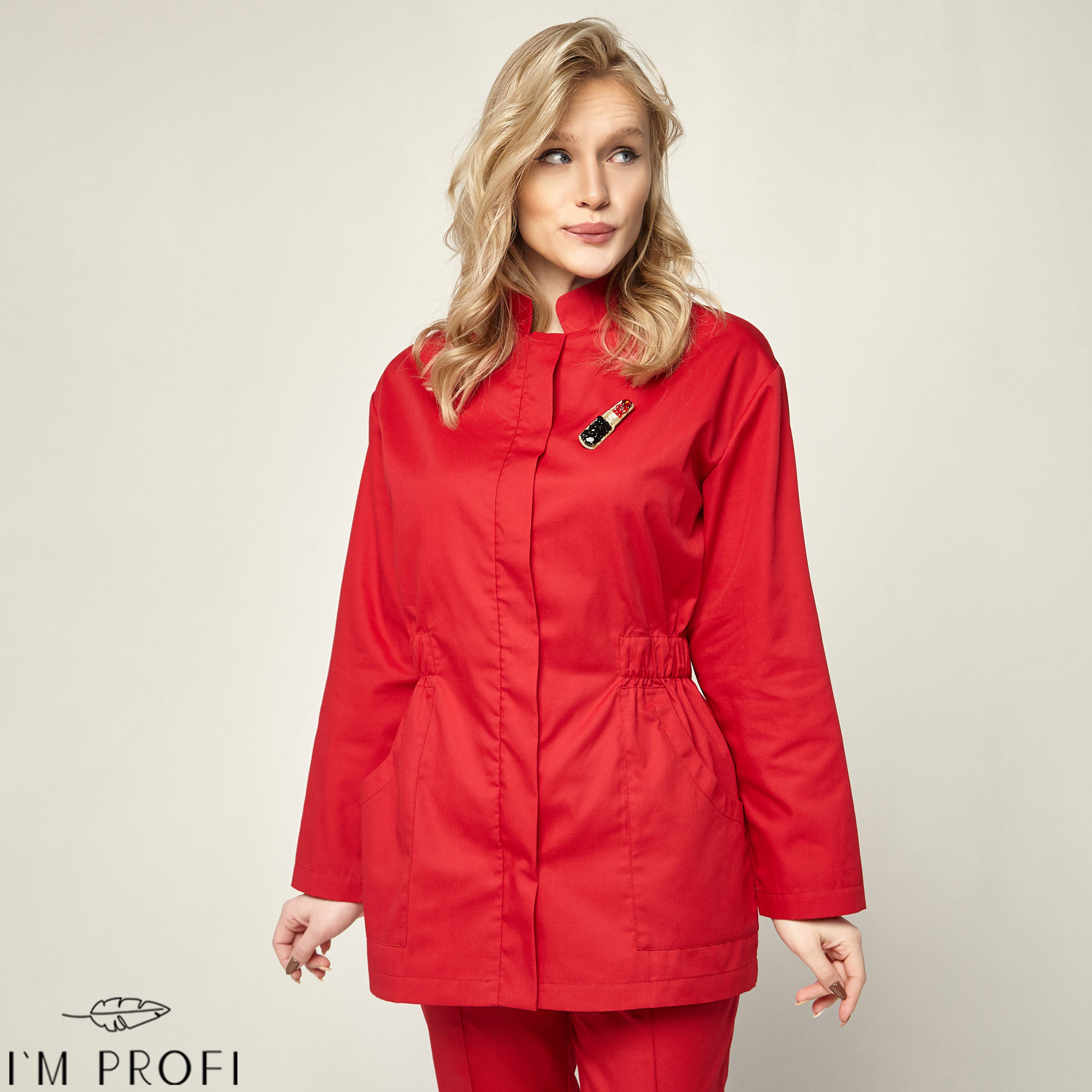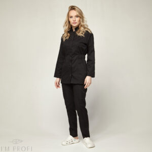 Медичний костюм для лікаря або б'юті-майстра, що складається з куртки з довгим рукавом і брюк зі стрілкою. Подовжена приталена куртка добре сідає по фігурі за рахунок гумки в талії. Куртка доповнена місткими кишенями а також, потайною застібкою на кнопки і блискавку. Штани зручного прилеглого крою, без застібки, доповнені для зручності гумкою в поясі і функціональними кишенями.