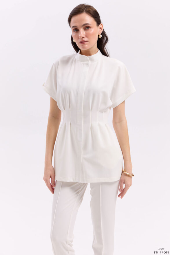 Елегантний жіночий медичний костюм у відтінку молочного білого для сучасного професійного образу. Мінімалістичний дизайн і акцент на силуеті роблять модель вишуканою та універсальною.
