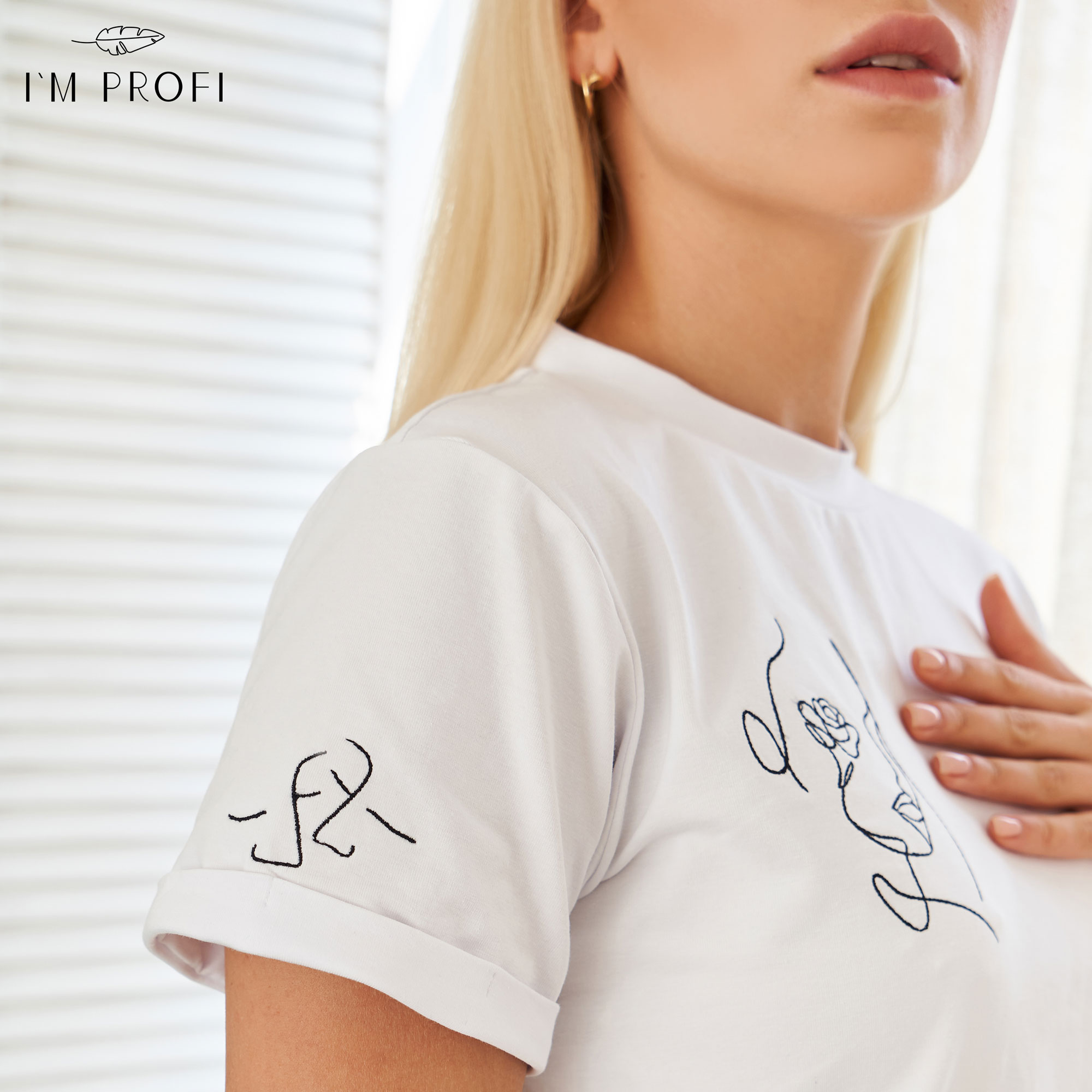 Лаконічна футболка з бавовни відмінно впишеться в повсякденний або робочий гардероб. Класичний круглий виріз, прямий силует, базовий колір – підходить буквально під все. Футболка доповнена вишивкою в трендовом мінімалістському стилі.