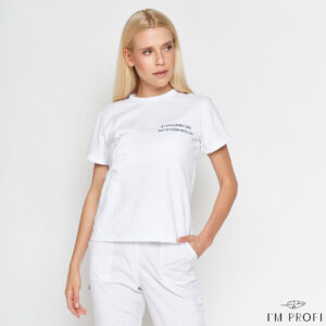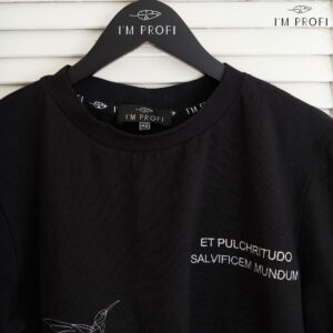 Лаконічна футболка з бавовни відмінно впишеться в повсякденний або робочий гардероб. Класичний круглий виріз, прямий силует, базовий колір – підходить буквально під все. Футболка доповнена вишивкою в трендовом мінімалістському стилі. Напис на латині "Краса врятує світ".