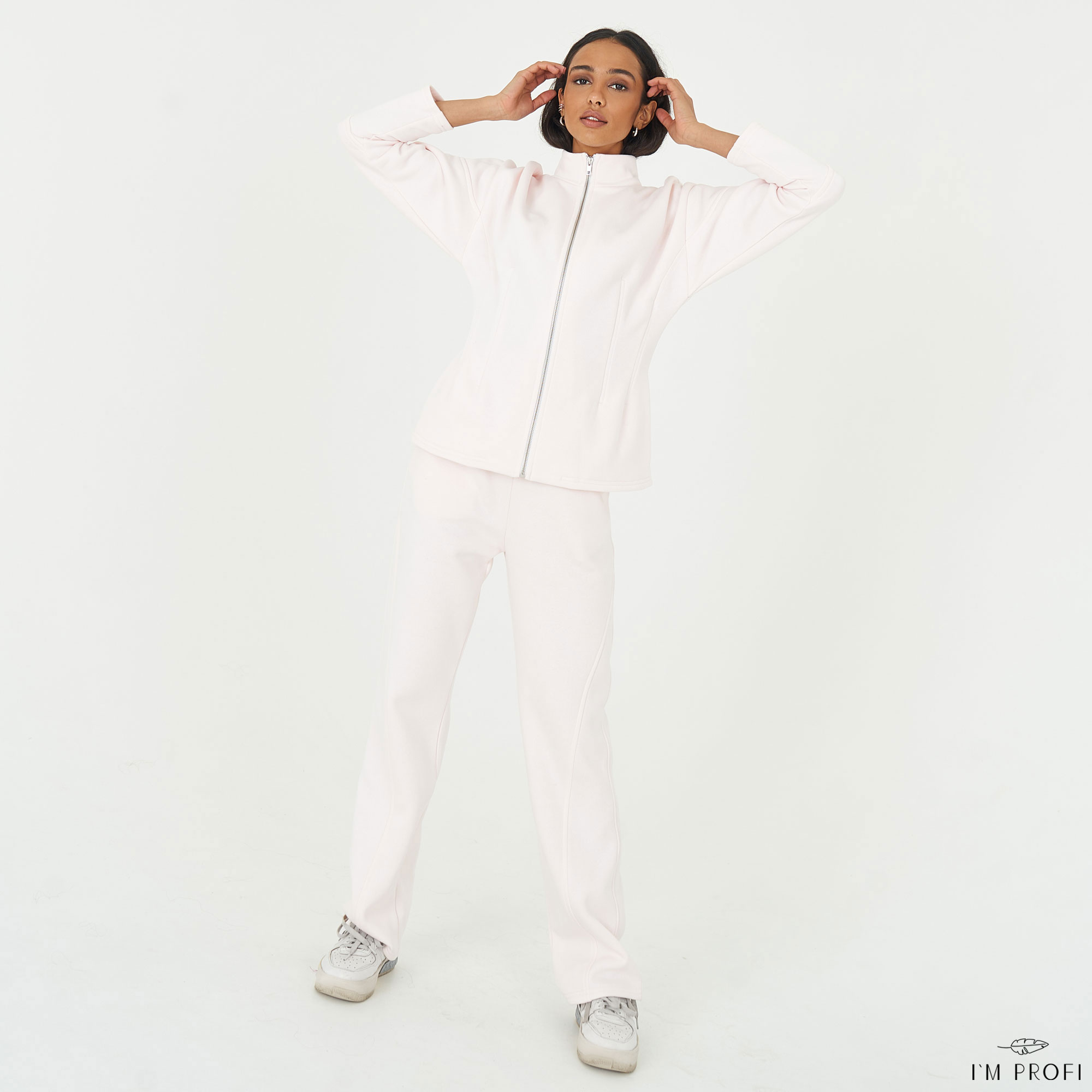 Костюм для бьюті-майстра, виготовлений з футеру на флісі високої якості. Коротка куртка корсетного крою, із застібкою на блискавку YKK, доповнена кишенями. У пару до куртки стильні штани з декоративними строчками та бічними кишенями. Лаконічний та зручний комплект із преміальних матеріалів для комфортної праці.